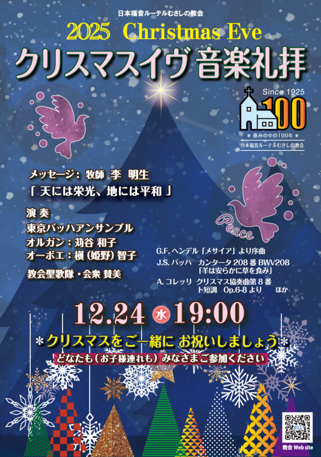 2025年12月24日(水)19:00 クリスマスイヴ音楽礼拝