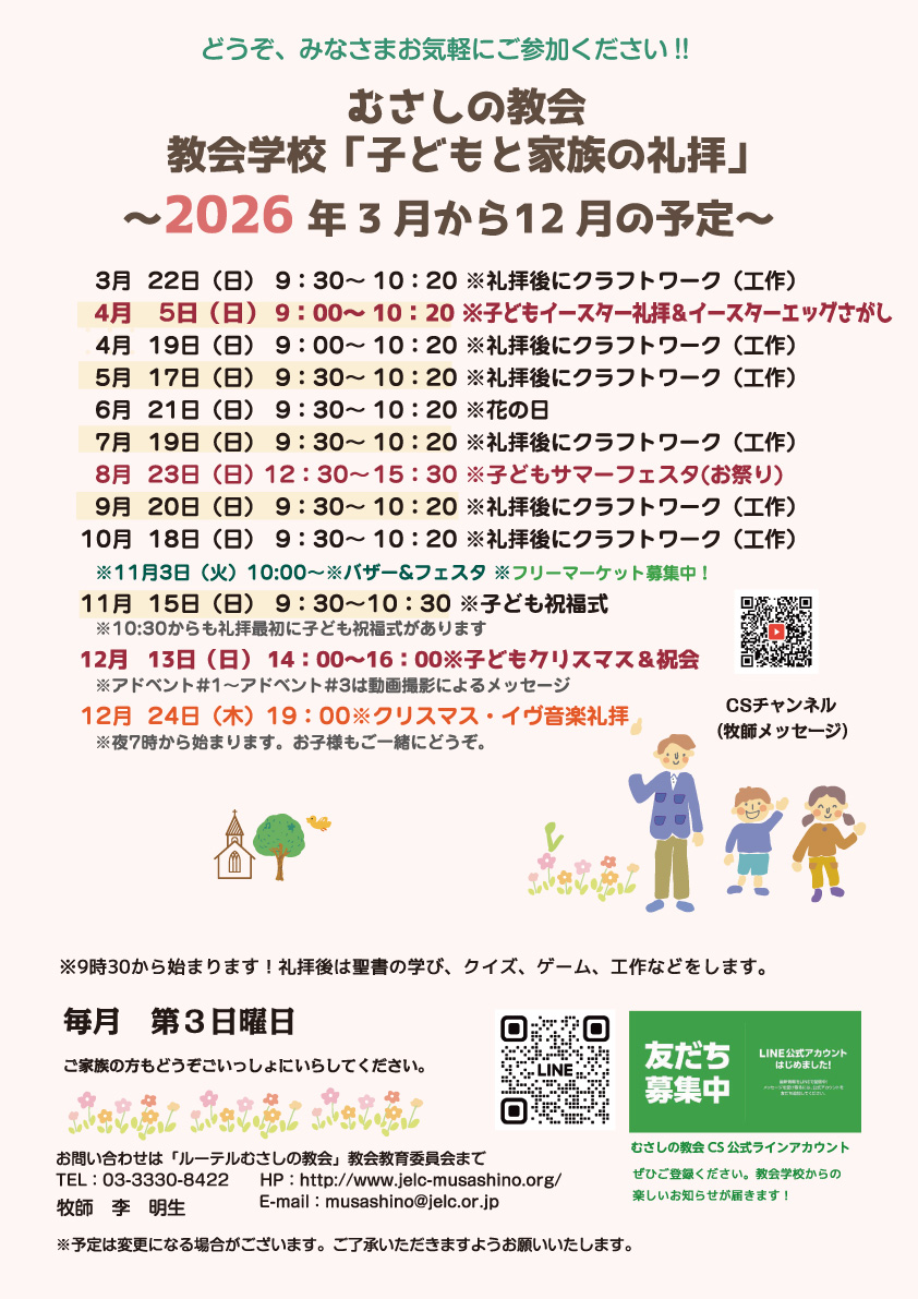 ↓※むさしの教会 教会学校 年間(3月〜12月)スケジュール