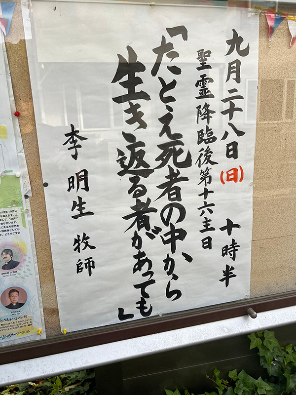 説 教「 たとえ死者の中から生き返る者があっても 」李明生 牧師